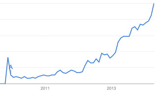 Graphs in usage metrics show knee in curve at Go 1.0 release.