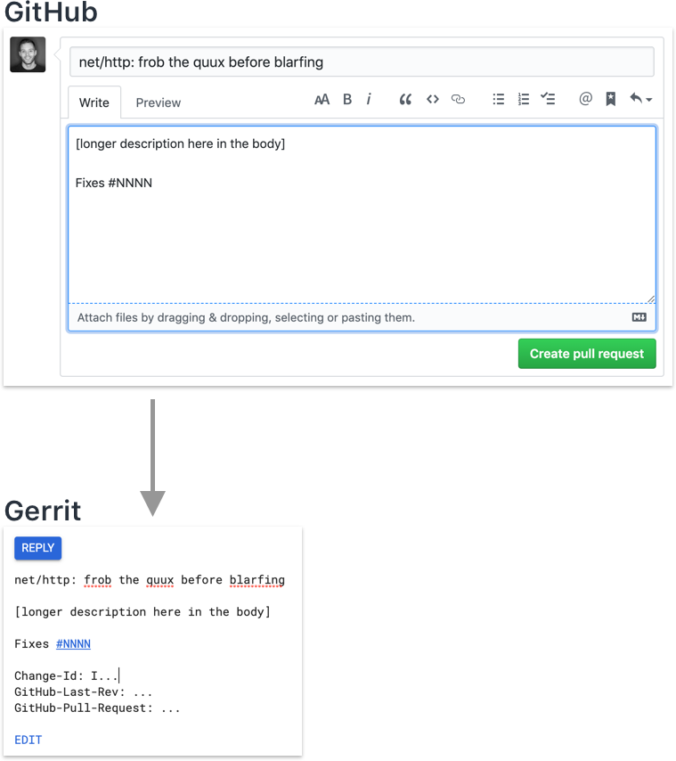 To link a commit to an issue without marking it fixed—for example, if the commit is working toward a fix but not yet a complete fix—GitHub requires only that the issue is mentioned by number in the commit message. By convention, Go commits mention this at the bottom of the message using For, where Fixes might be expected, even if the number is also mentioned in the body of the commit message.